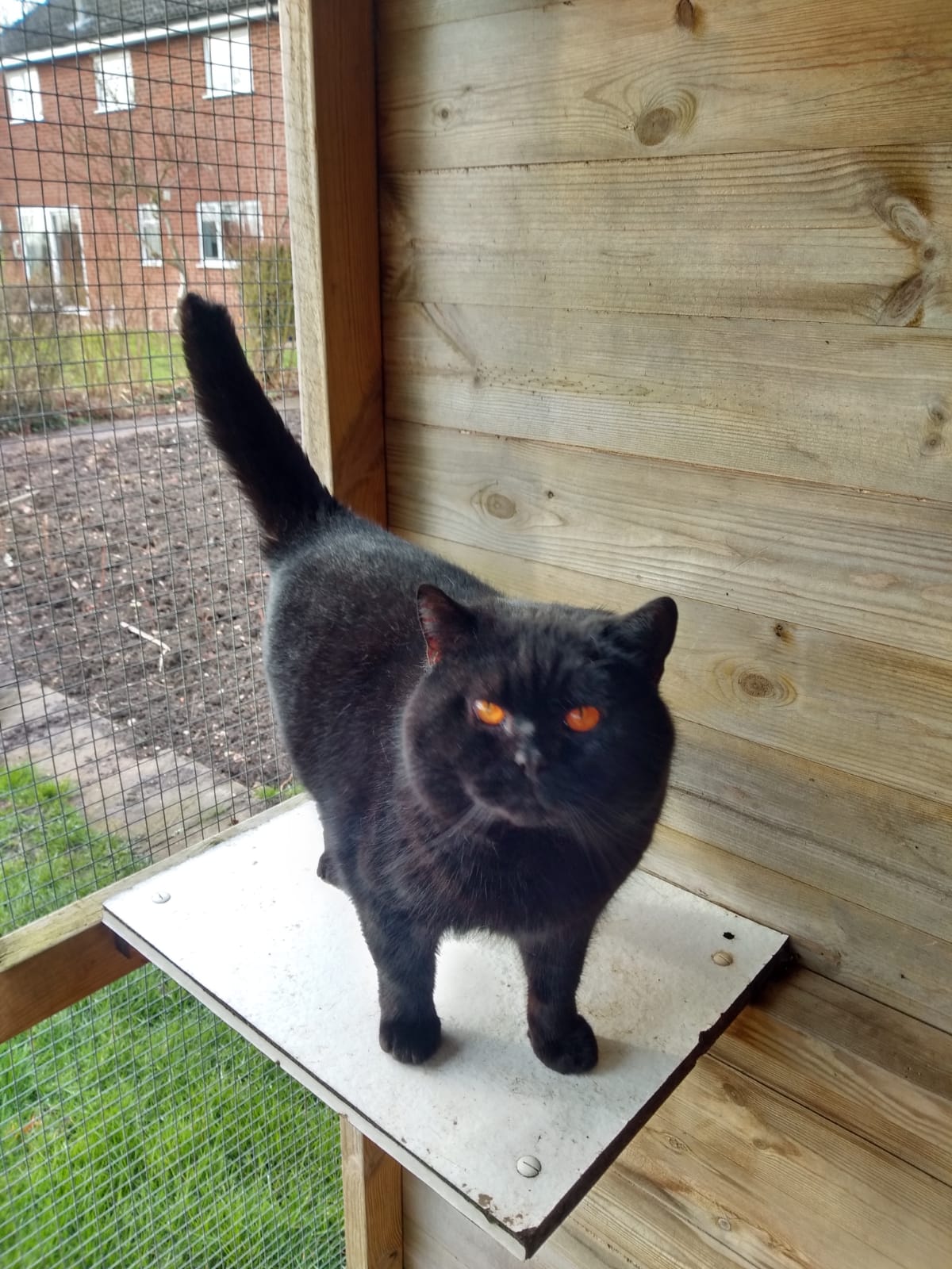 Zak is a large chunky boy of excellent type, good construction with a massive head and body, stunning eye colour and a superb dense deep black coat. He produces true to type chunky kittens and has a wonderful disposition which he passes onto his offspring.